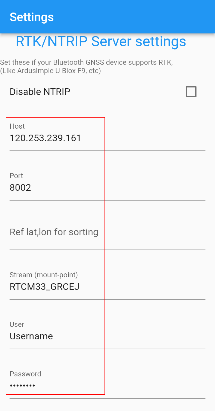 * NTRIP service must be applied for in advance, and you will receive a username, password, and other information from the service provider. You can also set up your own NTRIP server using "GeoAstra" . |