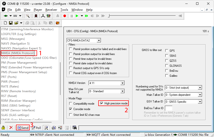 EX-1默认的NMEA语句的位置精度为小数点后5位,最小分辨率约为1~2cm。