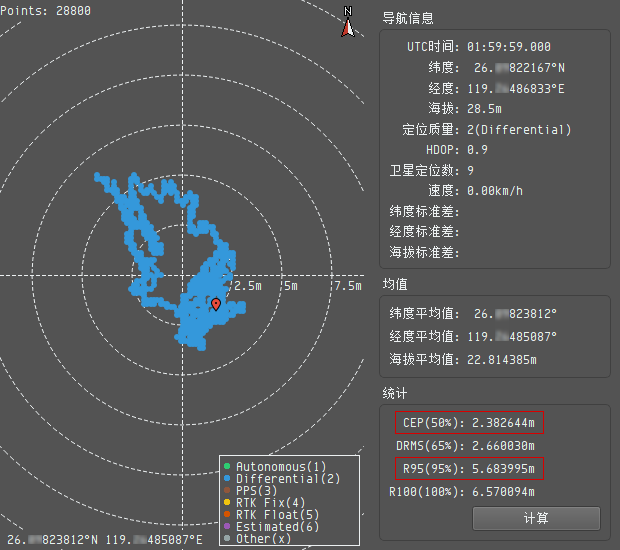 测试内容:测量接收机的静置定位精度 (配置文件参数:Speedmask=OFF)。 |