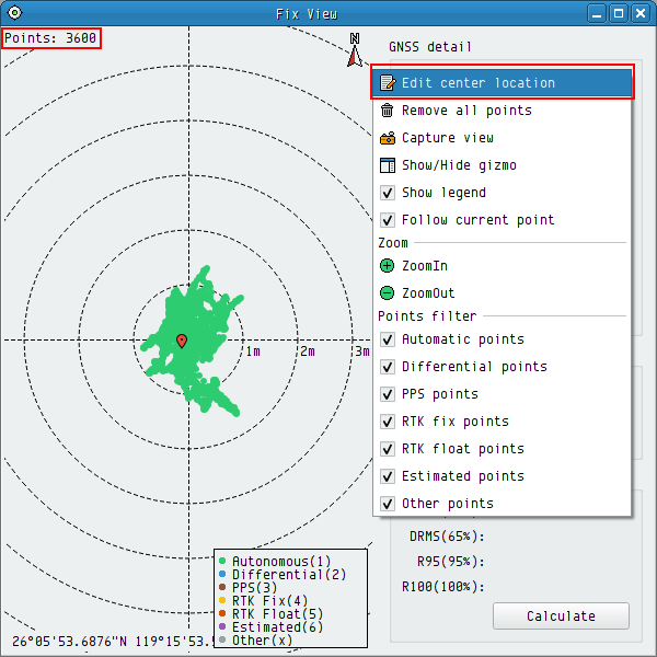 9. In the positioning status, in a static state and wait for 1 hour, and more than 3,600 points (1 hour) are displayed in the upper left corner. Right-click on the page and select "Edit center location". |